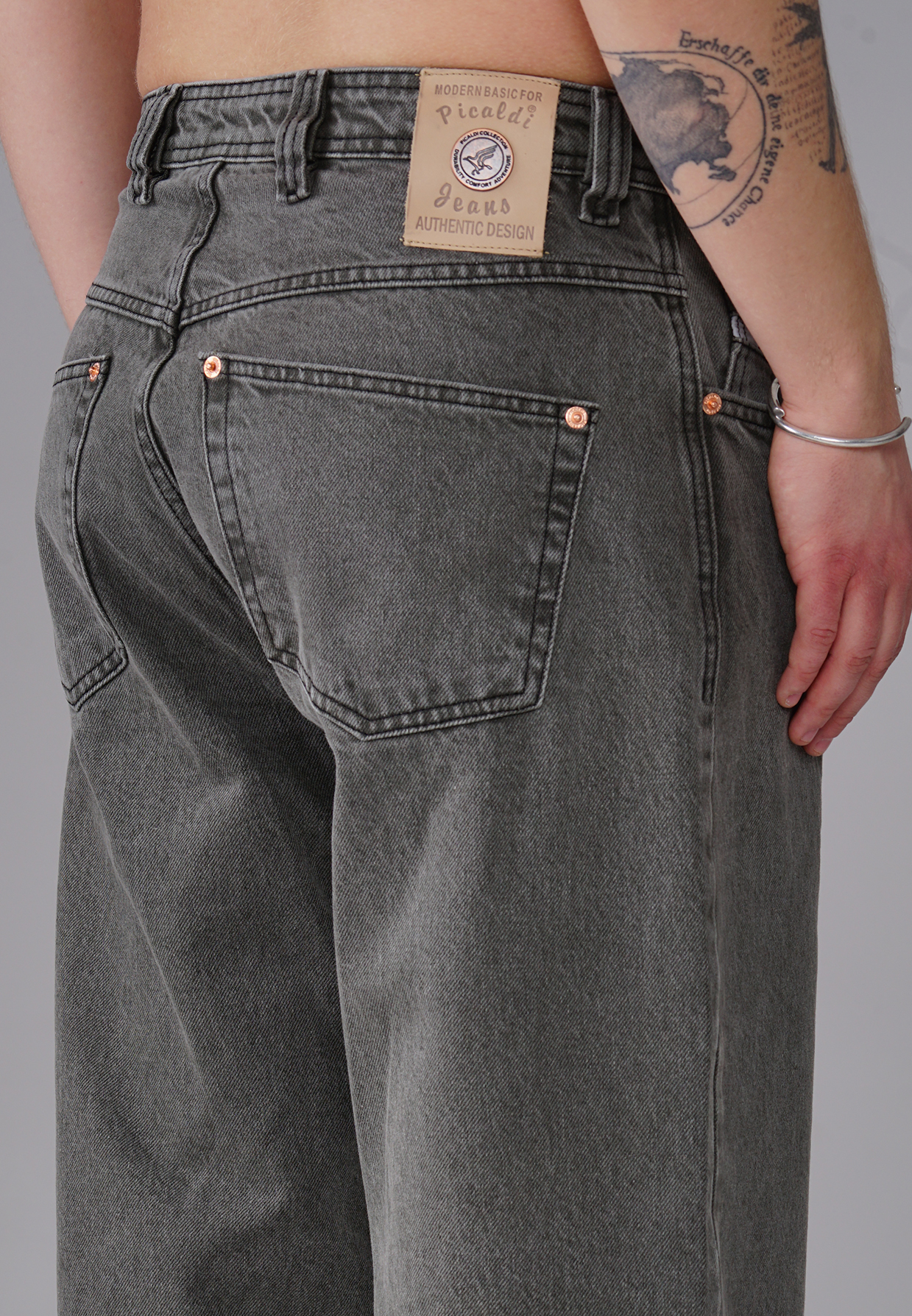Die Picaldi Zicco 471 Titan in Washed Anthracite kombiniert einen modernen Loose Tapered Fit mit einer ausdrucksstarken, anthrazitfarbenen Waschung. Locker geschnitten im Oberschenkel und schmal zulaufend am Bein sorgt sie für Bewegungsfreiheit und eine markante Silhouette – ideal für lässige Streetwear-Styles ebenso wie für smarte Casual-Looks.