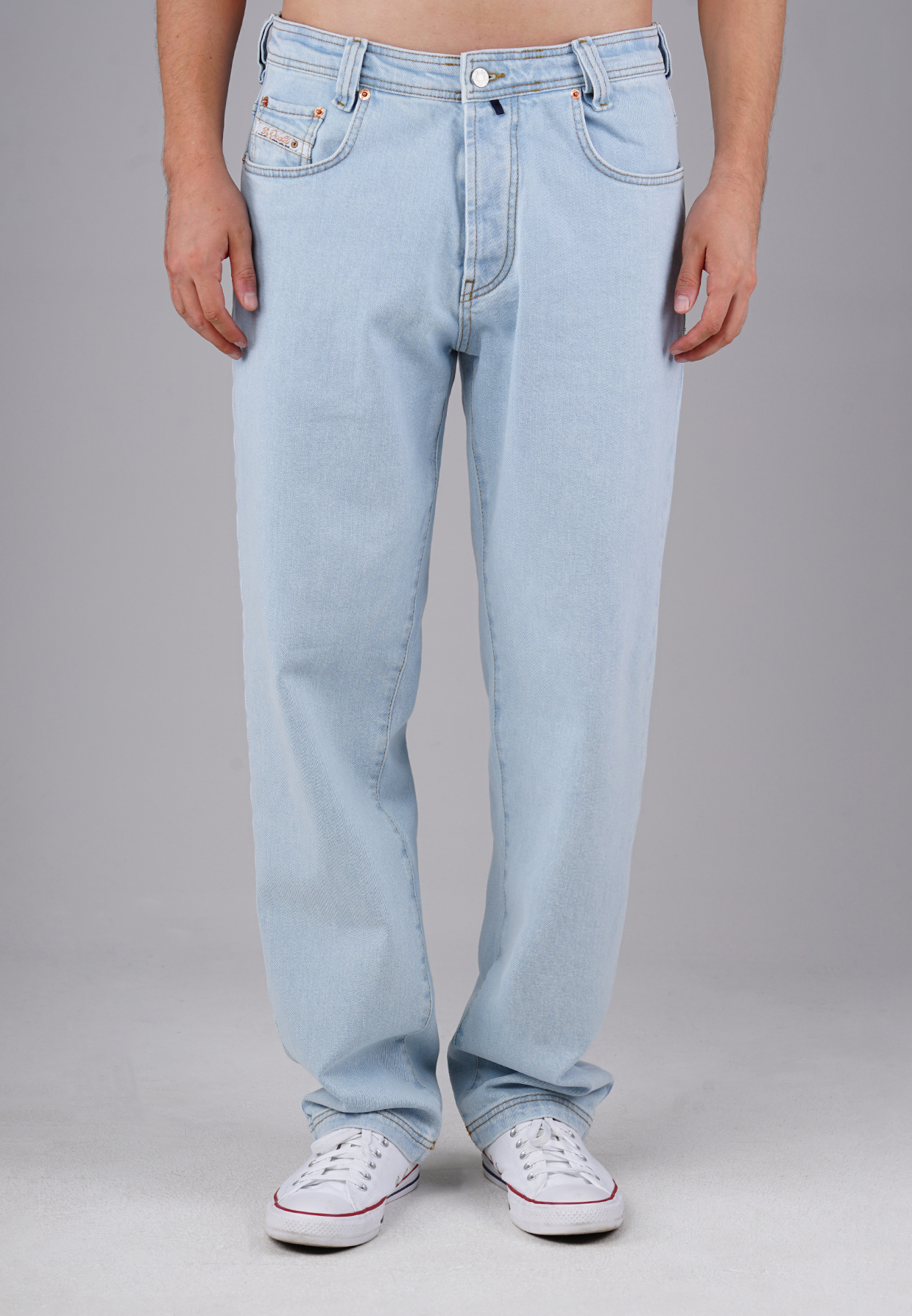 98% Baumwolle und 2% Elasthan – strapazierfähiger Denim mit natürlichem Griff und angenehmem Tragegefühl im Relaxed Fit