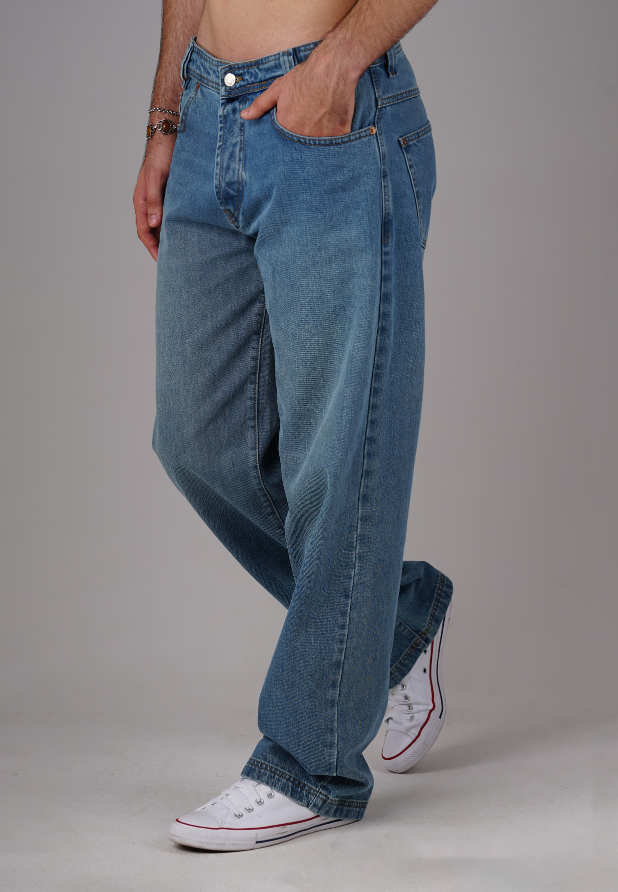 - Relaxed Fit – tiefer Schritt & gerader Beinverlauf