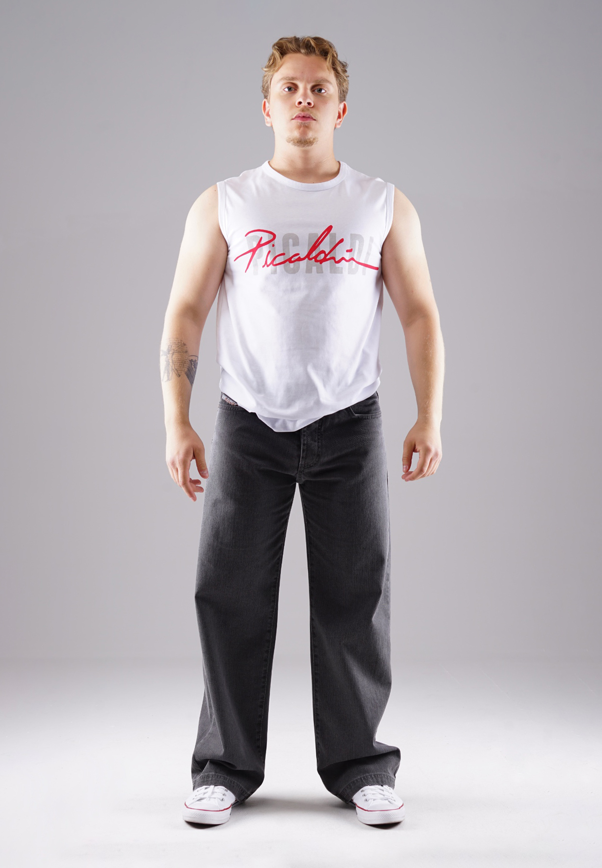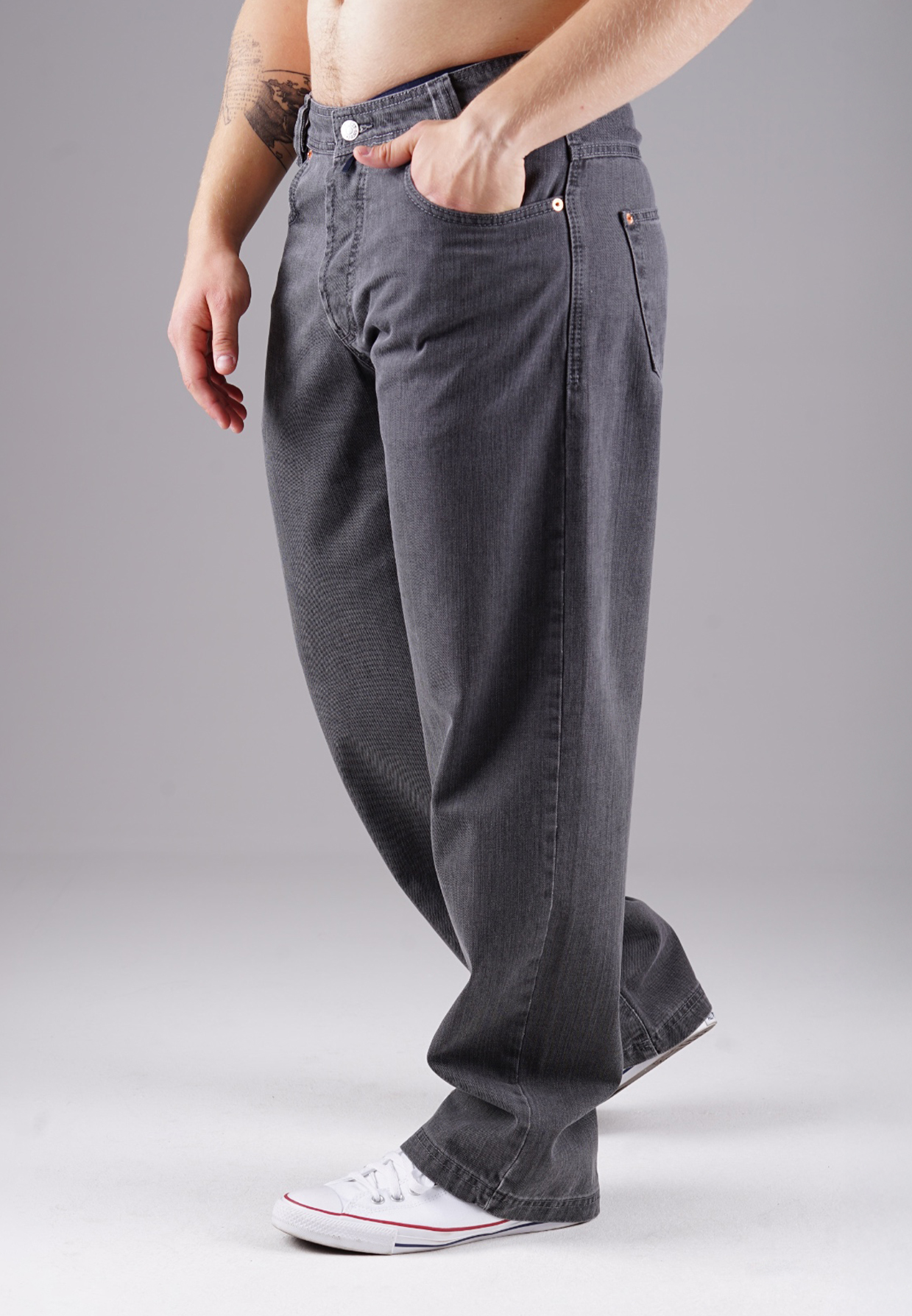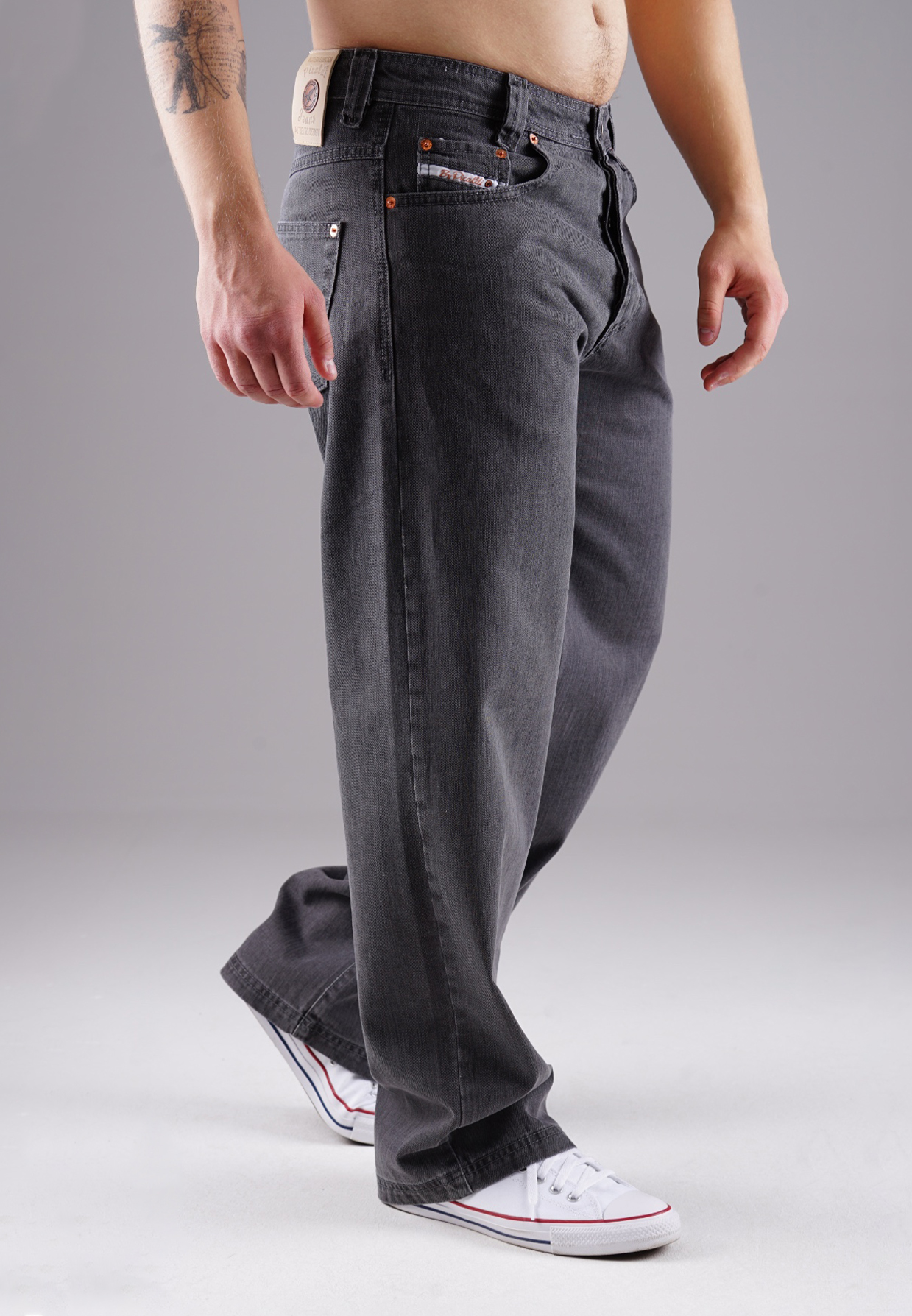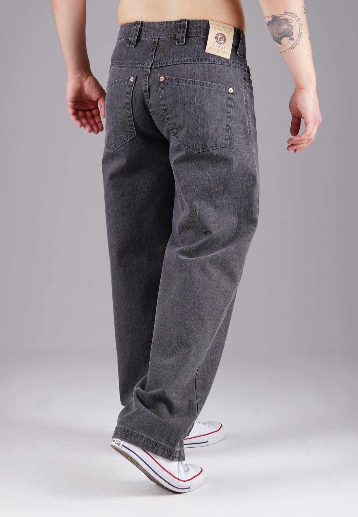 Mit tiefem Schritt, weitem Oberschenkel und geraden Beinverlauf steht diese Baggy Jeans für moderne Klarheit. Die Graphite Stone Waschung bringt Tiefe in den anthrazitfarbenen Denim – urban, aber nicht aufdringlich. Der feste 100 % Baumwollstoff ohne Stretch steht für kompromisslose Substanz. Geprägtes Lederpatch, verdeckte Knopfleiste und dezente Nähte formen den typischen Picaldi-Look.